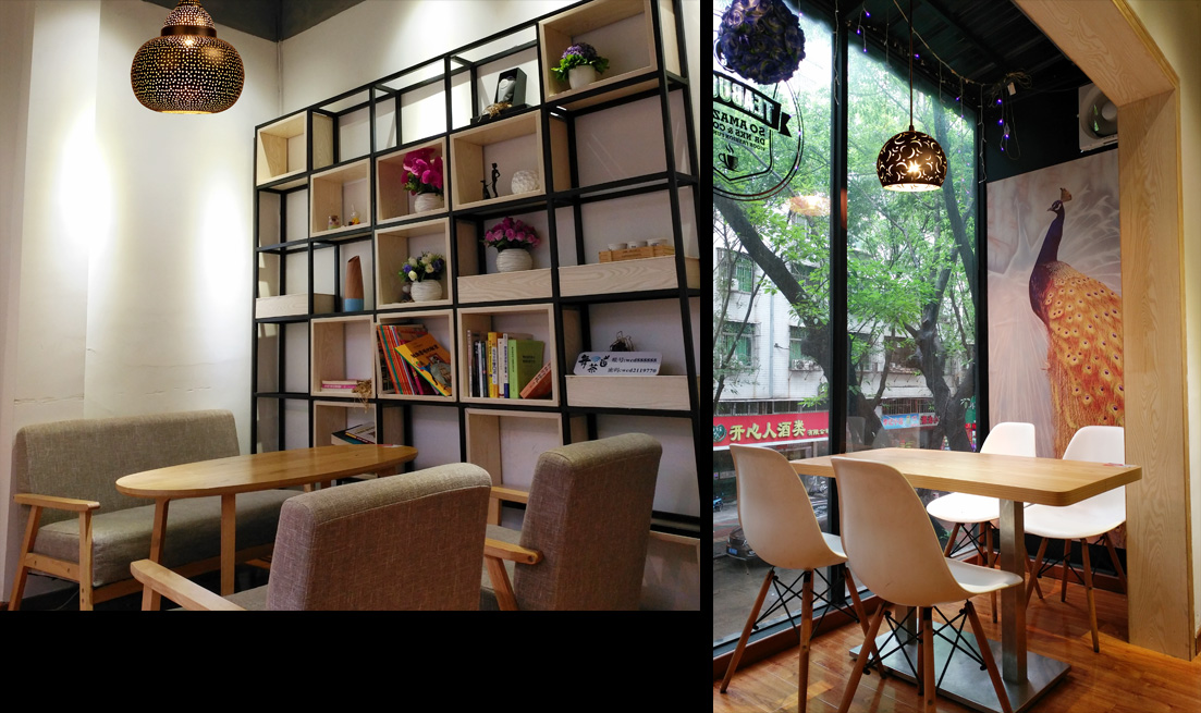 環(huán)境不大,四周綠植環(huán)繞,鐵藝書(shū)架零星的擺放著各類(lèi)書(shū)籍。走進(jìn)舞茶道,第一感覺(jué)舒適、恬靜,適合捧杯熱茶靜靜的坐于一角,或思考人生或翻閱書(shū)籍。球狀燈飾打下一束束暗黃的燈光,照亮了每個(gè)角落,也使得整個(gè)環(huán)境溫馨而美好,伴以濃濃茶香,一室安好。